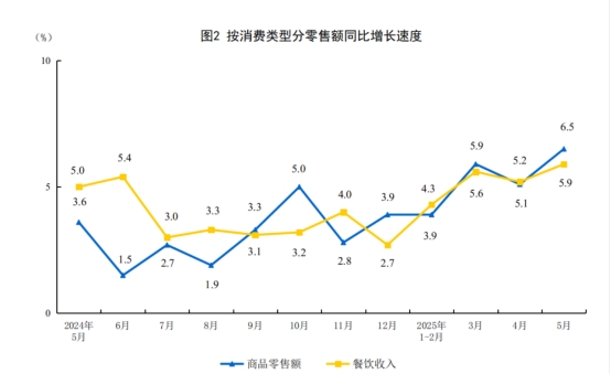 2025年5月份社會(huì)消費(fèi)品零售總額增長6.4%