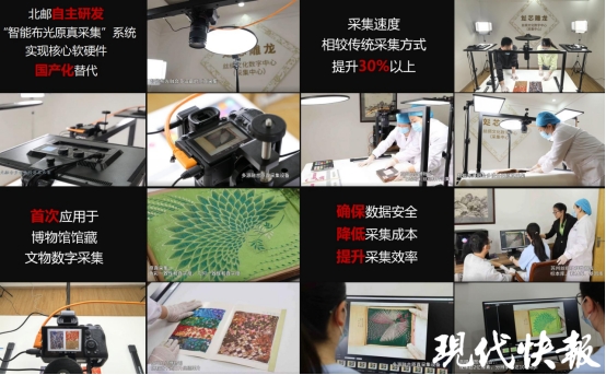 此次,蘇文投集團與北京郵電大學和蘇州絲綢博物館三方攜手在蘇州聯(lián)合成立“彣芯雕龍·絲綢文化數(shù)字中心”,并將絲綢紋樣數(shù)字化創(chuàng)新應(yīng)用項目作為北京郵電大學牽頭的國家重點研發(fā)計劃揭榜掛帥項目《文化資源大數(shù)據(jù)服務(wù)技術(shù)集成與典型應(yīng)用》的應(yīng)用示范點。圍繞“彣芯雕龍?絲綢文化數(shù)字中心”建設(shè),絲綢博物館“未來館”落地部署了北郵自主研發(fā)的“采存算”一體化軟硬件系統(tǒng),讓先進技術(shù)賦能紋樣數(shù)字轉(zhuǎn)化應(yīng)用工作全流程,這也是該系統(tǒng)首次落地地方博物館。