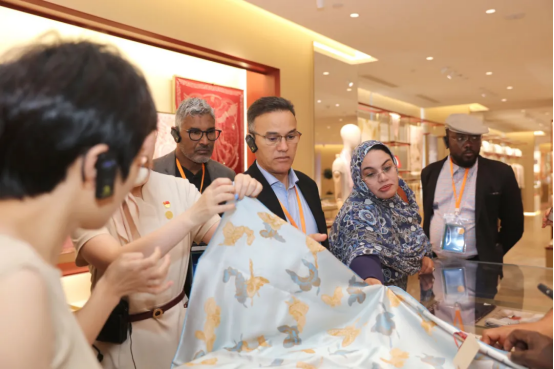 6月18日上午,習(xí)近平經(jīng)濟(jì)思想研究中心帶隊(duì)毛里塔尼亞學(xué)習(xí)中國(guó)市場(chǎng)化經(jīng)濟(jì)發(fā)展經(jīng)驗(yàn)研修班走進(jìn)萬事利科創(chuàng)中心,深度考察調(diào)研傳統(tǒng)絲綢產(chǎn)業(yè)在習(xí)近平經(jīng)濟(jì)思想引領(lǐng)下取得的一系列科技創(chuàng)新成果和高質(zhì)量發(fā)展實(shí)踐。此次參訪是習(xí)近平經(jīng)濟(jì)思想國(guó)際傳播的重要實(shí)踐,萬事利集團(tuán)也將繼續(xù)以絲綢文化為紐帶,為生動(dòng)講好中國(guó)經(jīng)濟(jì)發(fā)展故事貢獻(xiàn)力量。