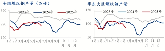 年以來,建材不管是需求、利潤還是價格表現(xiàn)在主要鋼材品種中表現(xiàn)最弱,建材廠轉(zhuǎn)產(chǎn)為長期趨勢。轉(zhuǎn)無可轉(zhuǎn)的建材企業(yè)在鋼坯利潤略好于螺紋的情況下,對鋼坯保持高生產(chǎn)態(tài)度,當然也建立在海外鋼坯高需求及不受出口關(guān)稅和反傾銷影響下,鋼坯出口新賽道就落入盈利較差建材廠上,事實上鋼坯出口一定程度由國內(nèi)建材生產(chǎn)企業(yè)生產(chǎn),特別是國內(nèi)建材產(chǎn)量最大的華東,這從華東產(chǎn)量見頂先于全國1個多月見頂,且去庫斜率加速可以看出。