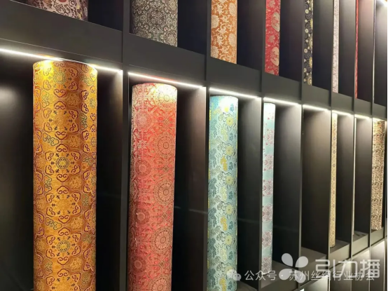 記者從上久楷了解到,在宋錦藝術空間背后,是上久楷十余年在宋錦織造方面的不懈努力。早于2012年,上久楷突破電子提花機技術,實現(xiàn)傳統(tǒng)工藝與現(xiàn)代科技的震撼交融。2013年,建成中國宋錦文化園,年接待游客超30萬,推動非遺活態(tài)傳承。2014年,榮膺APEC領導人新中式服裝面料唯一供應商,閃耀世界舞臺。當年起至2023年,上久楷連續(xù)十年為外交部定制國禮,也使宋錦成為國家名片。