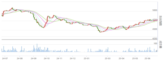 今日(周二)生絲電子盤各遠近合約均小幅收綠。因250625合約于昨日以 47.1萬的市,新上市的260825合約首日交易以 48.27萬的價格收盤,較退市合約溢價,帶動生絲電子指數(shù)實現(xiàn)技術(shù)性收紅。