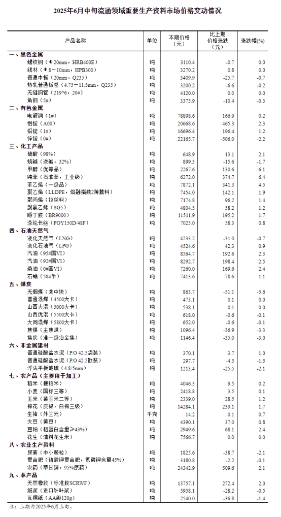 國家統(tǒng)計(jì)局消息,據(jù)對全國流通領(lǐng)域9大類50種重要生產(chǎn)資料市場價(jià)格的監(jiān)測顯示,2025年6月中旬與6月上旬相比,27種產(chǎn)品價(jià)格上漲,17種下降,6種持平。