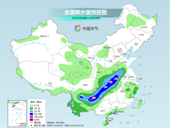 今明兩天(6月25日至26日),江南西部、江漢、黃淮等地部分地區(qū)雨勢較強(qiáng),局地有大暴雨,四川、重慶、貴州、湖北、湖南等地降雨區(qū)域與前期重疊度較高,需注意防范次生災(zāi)害的發(fā)生。同時,華北、東北、新疆等地高溫天氣持續(xù),明天華北平原高溫將明顯減少,長江中下游多地高溫發(fā)展。