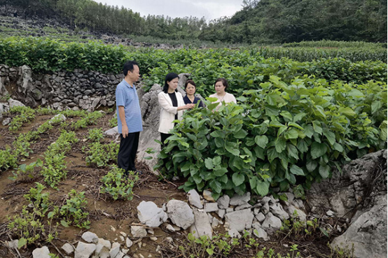 在馬頭鎮(zhèn)古念村,服務組實地考察石漠化地區(qū)桑園,就如何改良土壤提高地力、減少桑樹病蟲害發(fā)生,提高桑葉產量和質量開展技術指導。
