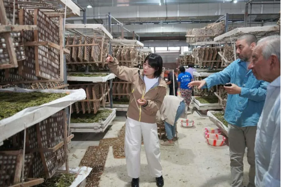 隨后,Bawa院士一行參觀了天虹蠶工場、雙聯(lián)養(yǎng)蠶大棚、蠶繭交易中心等關鍵蠶?;?,系統(tǒng)了解了公司在桑苗培育、土地流轉(zhuǎn)、農(nóng)戶合作管理、蠶繭收購交易等核心環(huán)節(jié)的運營模式,并聽取了總經(jīng)理薛憶關于企業(yè)在推動蠶桑產(chǎn)業(yè)可持續(xù)發(fā)展、帶動農(nóng)戶增收致富方面的整體實踐介紹。