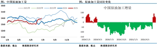 需求方面,上周美國原油表需有小幅下行,不過在傳統(tǒng)消費旺季階段,整體消費處于年內(nèi)高位階段,汽油消費表現(xiàn)較好,柴油消費平淡,整體來看美國原油需求明顯低于年初預(yù)期,EIA最新展望中已經(jīng)將美國原油需求下調(diào)到了增長8萬桶/日的低速(年初預(yù)期的1/3)。中國原油加工量連續(xù)第四周反彈,連續(xù)三周高于去年同期加工量,但最近2周汽柴油產(chǎn)量幾乎沒有增長,原油加工增量主要去往了化工鏈條和航煤,成品油消費明顯低于去年同期,這讓煉廠不得不調(diào)整生產(chǎn)計劃。