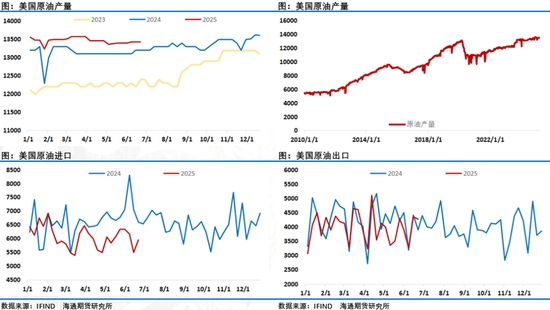 貝克休斯油服數(shù)據(jù)顯示美國鉆探公司連續(xù)第九周削減石油和天然氣鉆機數(shù)量。美國至6月27日當(dāng)周石油鉆井總數(shù) 432口,前值438口,鉆機數(shù)的連續(xù)下降意味著美國原油產(chǎn)量增速將持續(xù)變緩。近期原油產(chǎn)量基本平穩(wěn),最新一期EIA周度報告顯示美國原油產(chǎn)量在1343.50萬桶/日;當(dāng)周原油進口量環(huán)比增加44萬桶/日,出口量環(huán)比減少9.1萬桶/日,凈進口量環(huán)比上升,不過相對來講凈進口量明顯低于去年同期,這正是美國石油庫存下降的主要原因。
