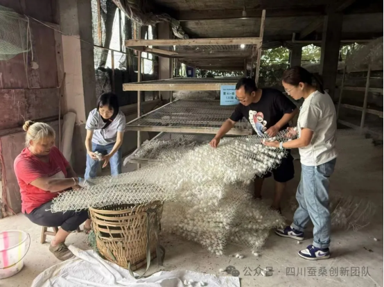 專家們圍繞適熟采繭時(shí)機(jī)判定、采繭操作規(guī)范、鮮繭分類保存技術(shù)要點(diǎn)等內(nèi)容,結(jié)合“川蠶31號”高品位繭絲品種特性,為蠶農(nóng)進(jìn)行現(xiàn)場示范教學(xué)。要求按上蔟先后順序適時(shí)采收,輕采輕放,避免損傷;采繭前需清除病蠶殘?bào)w及雜物,防止污染;進(jìn)行分級采、存、售;進(jìn)行科學(xué)攤晾,鮮繭薄攤,防發(fā)熱變質(zhì);采繭后及時(shí)對蠶棚及蔟具進(jìn)行全面消殺預(yù)防病害,為下批蠶的飼育做好準(zhǔn)備。