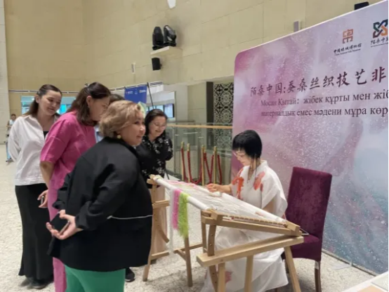 在前不久舉辦的“陌桑中國”非遺展演上,當臺繡的玲瓏剔透、扎染的奇幻色彩與茶藝的東方意境一同呈現(xiàn)在中亞觀眾面前時,300余位嘉賓都驚呼不可思議。同期舉辦的絲綢與絲路展覽,更以145件古今絲綢珍品,勾勒出從長安到撒馬爾罕的文明交流軌跡。北朝對獅對象牽駝紋錦上的胡商形象,與現(xiàn)代數(shù)碼印花技術制作的絲路地圖相映成趣,講述著歷史故事。