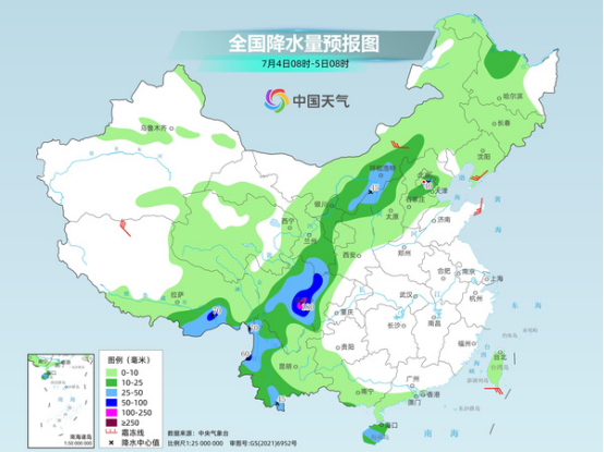 近期,我國的降雨帶穩(wěn)定在四川盆地、西北地區(qū)東部、華北、東北一帶,昨天四川盆地西部、甘肅東部、山西中部、河北中部和東北部、天津南部、遼寧半島、黑龍江北部等地部分地區(qū)出現(xiàn)暴雨或大暴雨,河北滄州局地特大暴雨。