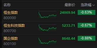 7月3日消息,港股三大指數(shù)高開低走。截至收盤,恒生指數(shù)(24069.939, -151.47, -0.63%)跌0.63%,報24069.94點,恒生科技指數(shù)(5233.71, -35.40, -0.67%)跌0.67%,國企指數(shù)跌0.88%。盤面上,科網(wǎng)股普跌,小米集團跌超3%,阿里巴巴、美團、京東集團跌超2%,聯(lián)想集團(9.73, 0.29, 3.07%)漲超3%;創(chuàng)新藥概念大漲,華昊中天醫(yī)藥超55%;證券及經(jīng)紀(jì)板塊多股上漲,國泰君安國際(3.86, 0.40, 11.56%)漲超10%;蘋果概念股普漲,高偉電子(29.15, 1.15, 4.11%)漲超4%;鋼鐵板塊回調(diào),重慶鋼鐵股份(1.32, -0.40, -23.26%)跌超20%;新股撥康視云首日破發(fā),跌超38%。