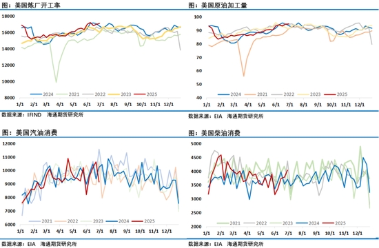 中國原油加工量連續(xù)5周高于去年同期,歸功于主營煉廠開工率繼續(xù)刷新5年同期高位,值得一提的是雖然原油加工量提升明顯,但增量相當(dāng)一部分是去了化工鏈條,數(shù)據(jù)顯示今年中國汽柴油消費(fèi)明顯低于去年同期,中國原油實(shí)際需求增量仍非常有限。近期成品油市場的亮點(diǎn)是歐美柴油表現(xiàn)強(qiáng)勁,美國柴油消費(fèi)反彈及庫存低位均支撐了柴油價(jià)格的走強(qiáng)。盡管消費(fèi)旺季階段整體表現(xiàn)尚可,但已經(jīng)很難匹配供應(yīng)端后續(xù)的增產(chǎn)壓力。