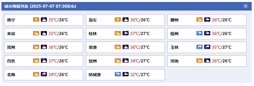 廣西氣象臺(tái)7日05時(shí)發(fā)布預(yù)報(bào):