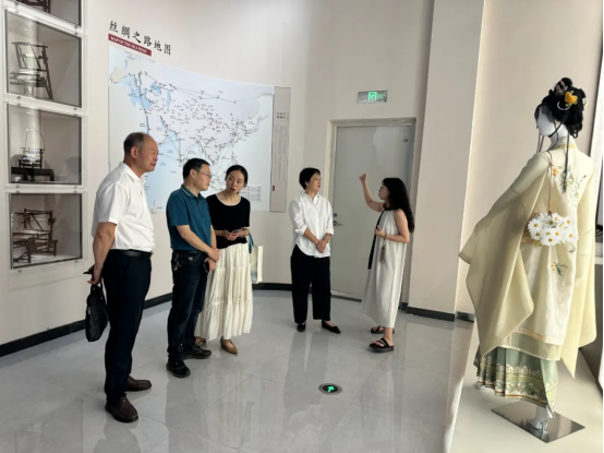 王玉娟一行參觀考察絲綢文化產(chǎn)業(yè)園及文化產(chǎn)業(yè)空間等內(nèi)容,重點了解產(chǎn)業(yè)園區(qū)與浙江理工大學(xué)湖州研究院共建“絲綢+”數(shù)字平臺情況。