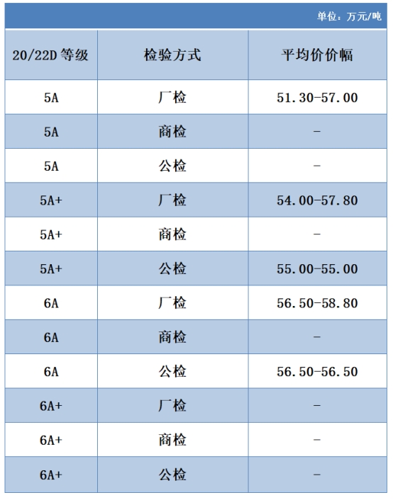 本周高品位生絲協(xié)作單位成交價格區(qū)間