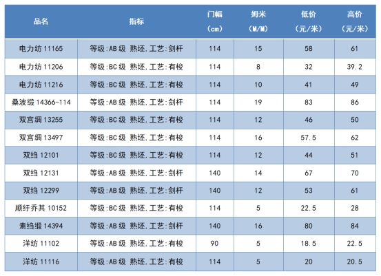 本周綢緞指數協(xié)作單位成交價格區(qū)間