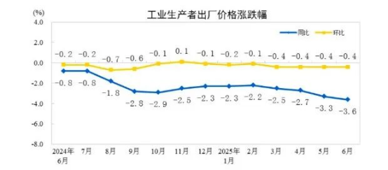 同時(shí),6月PPI環(huán)比-0.4%,連續(xù)7個(gè)月負(fù)增,弱于歷史同期平均水平-0.1%;同比-3.6%,降幅比上月擴(kuò)大0.3個(gè)百分點(diǎn),創(chuàng)2023年8月以來新低。這個(gè)數(shù)字意味著企業(yè)有沒有底氣漲價(jià),有沒有能力保持保持自己利潤,對(duì)市場來講,有沒有需求,有沒有付錢的能力與意愿。