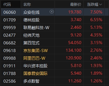 7月23日消息,港股三大指數(shù)集體走高。截至收盤,恒生指數(shù)(25538.07, 408.04, 1.62%)漲1.62%,報25538.07點,恒生科技指數(shù)(5745.74, 138.91, 2.48%)漲2.48%,國企指數(shù)漲1.82%。盤面上,科網(wǎng)股普漲,快手漲超7%,百度漲超6%,騰訊控股(552, 26.00, 4.94%)漲超4%;手游股漲幅居前,飛魚科技(0.44, 0.14, 49.15%)漲近50%;中資券商股普漲,國聯(lián)民生(5.99, 0.31, 5.46%)漲超5%;穩(wěn)定幣概念股多股上漲,眾安在線(19.78, 1.38, 7.50%)漲超7%;保險股活躍,中國人壽(21.65, 0.70, 3.34%)漲超3%;雅江水電站相關(guān)板塊集體回調(diào);蔚來漲超8%;快手市值超越泡泡瑪特(242.4, -8.20, -3.27%)。