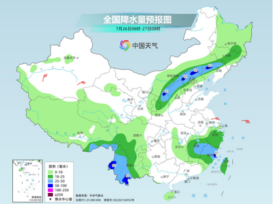 預(yù)計(jì)今明兩天,南方降雨將進(jìn)一步減少減弱,北方的強(qiáng)降雨則將繼續(xù)增多,部分地區(qū)將出現(xiàn)暴雨到大暴雨,并且部分地區(qū)會(huì)伴有短時(shí)強(qiáng)降水、雷雨大風(fēng)或冰雹等強(qiáng)對(duì)流天氣。后天,北方降雨開(kāi)始減弱,南方的降雨隨著臺(tái)風(fēng)接近,將再次增多增強(qiáng)。