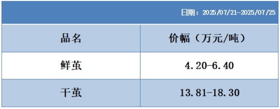 本周高品位生絲協(xié)作單位成交價(jià)格區(qū)間