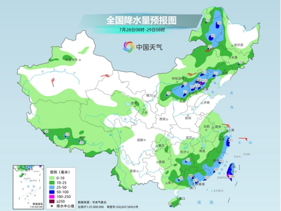 未來三天(7月28日至30日),華東地區(qū)降雨頻繁,浙江、江蘇、上海等地雨勢猛烈,華北、東北一帶依然降雨連連,雨勢逐漸減弱。在降水較少波及到的黃淮、江漢、華南以及陜西關中、四川盆地等地,本周高溫悶熱天氣持續(xù),不少地方還將晝夜連軸熱。