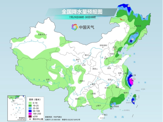 昨天,隨著副熱帶高壓減弱東退,水汽向北輸送減少,華北、東北一帶的強降雨有所縮減,同時華東地區(qū)出現(xiàn)較大范圍強降雨。監(jiān)測顯示,昨天8時至今天6時,北京東北部和南部、河北中部和東北部及浙江北部、江西中部、福建中南部、云南西南部、臺灣島中西部等地部分地區(qū)出現(xiàn)大到暴雨、局地大暴雨,河北承德興隆和臺灣島西部局地出現(xiàn)特大暴雨。