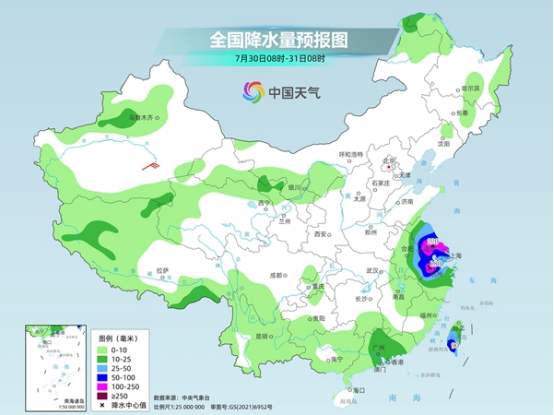后天,江蘇中南部、上海、安徽東部、浙江北部等地有大到暴雨,部分地區(qū)有大暴雨,臺灣島中南部有大到暴雨。
