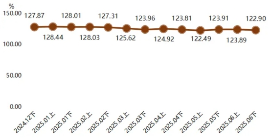 2025年上半年,熟皮價格指數(shù)整體呈下跌趨勢,6月下半月指數(shù)收于122.90點,較2024年12月下半月下跌3.89%。