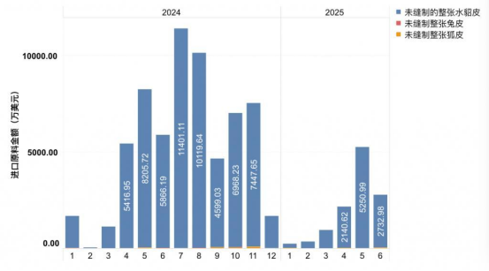 各類裘皮原料進(jìn)口金額統(tǒng)計圖(數(shù)據(jù)來源:中國海關(guān))