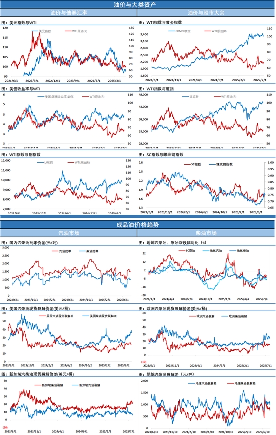 油價(jià)周二大幅沖高,輕松刷新了以伊停火以來的新高。凌晨API公布數(shù)據(jù)顯示原油(607, -8.60, -1.40%)、柴油均超預(yù)期累庫,數(shù)據(jù)公布后油價(jià)略微從高位有所回落。但市場(chǎng)注意力已經(jīng)聚焦在了對(duì)俄制裁上,凌晨1:30之后市場(chǎng)上出現(xiàn)了二個(gè)重大消息:一是中美發(fā)布了關(guān)于經(jīng)貿(mào)磋商進(jìn)展,根據(jù)會(huì)談共識(shí),雙方將繼續(xù)推動(dòng)已暫停的美方對(duì)等關(guān)稅24%部分以及中方反制措施如期展期90天。二是特朗普明確給俄羅斯10天時(shí)間,如果俄羅斯在結(jié)束俄烏沖突方面沒有取得進(jìn)展,美國將在10天內(nèi)開始對(duì)俄羅斯征收關(guān)稅,并采取其他措施。真正讓市場(chǎng)緊張的并不是美國對(duì)俄羅斯高關(guān)稅,而是其對(duì)俄羅斯的其他制裁,若實(shí)施所謂的二次制裁,將對(duì)俄羅斯石油買家征收100%關(guān)稅,此舉可能嚴(yán)重?cái)_亂全球石油供應(yīng),油價(jià)可能因此出現(xiàn)劇烈波動(dòng)。這將是一個(gè)非常關(guān)鍵的決定,對(duì)后市節(jié)奏影響巨大,顯然市場(chǎng)對(duì)此非常擔(dān)憂,特朗普的極限施壓讓市場(chǎng)保持高度警惕,該消息之后油價(jià)大幅沖高,市場(chǎng)繼續(xù)對(duì)該風(fēng)險(xiǎn)給予更高的溢價(jià)。(對(duì)俄制裁具體影響可查看我們昨日發(fā)布的專題報(bào)告:特朗普可能發(fā)動(dòng)的二級(jí)制裁對(duì)油市影響多大?)