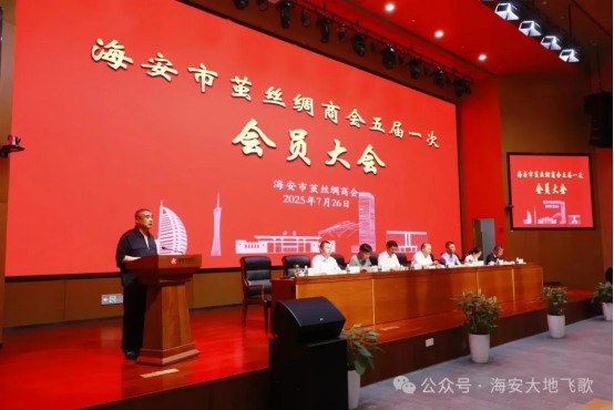 新當(dāng)選會長儲呈平作表態(tài)發(fā)言。他表示,將帶領(lǐng)商會全體會員提高政治站位,堅定政治信仰,全面貫徹黨的二十大精神,認(rèn)真落實國家“十五五”繭絲綢產(chǎn)業(yè)發(fā)展綱要、及海安市委市政府和各級部門的要求,著力構(gòu)建桑蠶繭絲綢一二三產(chǎn)融合發(fā)展、產(chǎn)學(xué)研協(xié)同發(fā)展新體系,創(chuàng)新產(chǎn)業(yè)新技術(shù)、新模式,堅持走集約化、科技化、智能化、精品化發(fā)展之路,打造海安繭絲綢品牌,開創(chuàng)新時代海安繭絲綢產(chǎn)業(yè)高質(zhì)量發(fā)展新局面。