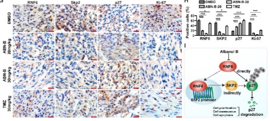 圖1. Albanol B通過(guò)調(diào)控RNF6介導(dǎo)的p27蛋白降解抑制腫瘤增殖