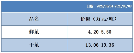 根據(jù)本周蠶繭報(bào)價(jià)按照指數(shù)方案形成的基準(zhǔn)品價(jià)格區(qū)間