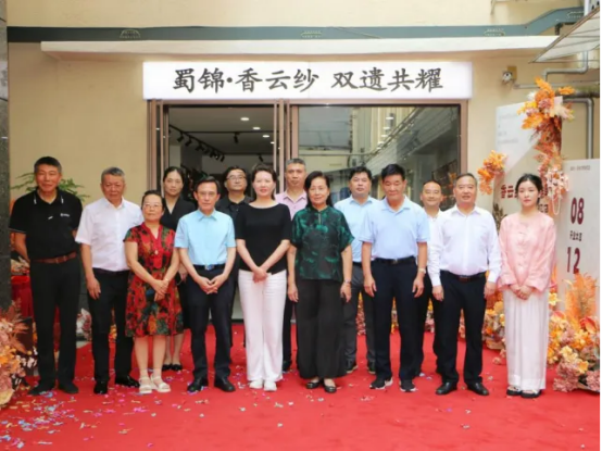 2025年8月12日上午10點(diǎn),由四川省絲綢科學(xué)研究院與廣東絲紡集團(tuán)香云紗公司攜手共建的蜀錦·香云紗成都旗艦店開業(yè)典禮于金仙橋路18號(hào)四川省絲綢科學(xué)研究院院內(nèi)隆重舉行。四川省服裝服飾行業(yè)協(xié)會(huì)、四川省絲綢協(xié)會(huì)、四川省蠶業(yè)協(xié)會(huì)、四川省紡織工程學(xué)會(huì)、成都紡織高等專科學(xué)校、廣東省絲綢紡織集團(tuán)香云紗有限公司、四川安娜凱瑟莉服飾有限公司、杭州濤巴京實(shí)業(yè)有限公司及成都蜀錦絲綢有限公司等單位領(lǐng)導(dǎo)與國家級(jí)非遺傳承人、行業(yè)專家及媒體代表共同見證了開業(yè)儀式的重要時(shí)刻。深圳市中農(nóng)智紡供應(yīng)鏈有限公司、四川財(cái)智恒邦實(shí)業(yè)有限公司、廣西柳城縣鴻藝絲綢有限公司、柳州市柳城縣石門山絲綢有限公司、廣西大宗繭絲國際交易中心有限公司、杭州江南國際絲綢城等單位贈(zèng)送花籃表示祝賀。