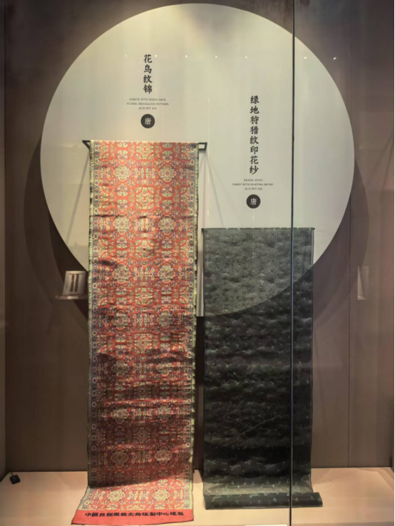 博物館的另一處展廳內(nèi),唐代的花鳥紋錦與綠地狩獵紋印花紗格外引人注目?;B紋錦色彩絢麗,精美的花鳥圖案在織物上栩栩如生,生動(dòng)展現(xiàn)出唐代高超的織錦技藝;綠地狩獵紋印花紗則質(zhì)地輕薄,狩獵圖案雖歷經(jīng)歲月卻依舊清晰,仿佛能讓人穿越時(shí)空,看到當(dāng)時(shí)狩獵場(chǎng)景的精彩瞬間。工作人員告訴實(shí)踐隊(duì)員們,這些珍貴的絲綢文物是研究唐代絲綢工藝與文化的重要實(shí)物資料,博物館通過(guò)對(duì)它們的精心展示與研究,讓更多人了解古代絲綢文化的博大精深,感受絲綢在歷史長(zhǎng)河中所承載的文化內(nèi)涵與藝術(shù)價(jià)值。