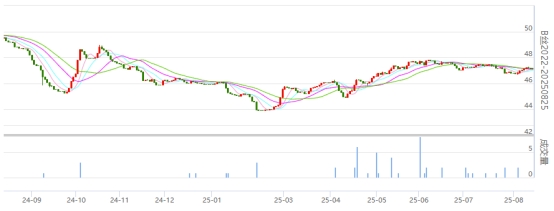 今日(2025年08月14日,周四)中國繭絲綢交易市場生絲電子指數(shù)微漲0.05%報(bào)收于4742.16點(diǎn)。B絲2022D(商檢4A級(jí)生絲):250825合約報(bào)平收于47.16萬元;250925合約上漲0.09萬元報(bào)收于47.22萬元;260325合約上漲0.09萬元報(bào)收于47.76萬元。