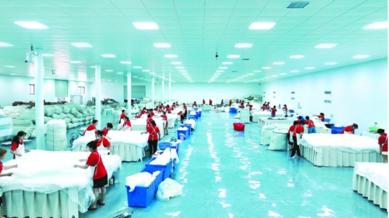 南充銀海絲綢公司成立于 2006 年,是一家專注蠶絲被研發(fā)生產(chǎn)的絲綢企業(yè),近年來,通過不斷研發(fā)創(chuàng)新和市場拓展,產(chǎn)品產(chǎn)銷量連續(xù)多年位居全省第一,成為嘉陵區(qū)絲紡服裝產(chǎn)業(yè)“五朵金花”之一,廣泛受到各級(jí)領(lǐng)導(dǎo)和客戶的關(guān)注和好評(píng)。由于廠區(qū)建于2011 年,原有房頂和墻壁材質(zhì)保溫隔熱防塵效果差,灰塵散落影響產(chǎn)品品質(zhì),同生產(chǎn)高檔蠶絲被產(chǎn)品遠(yuǎn)不匹配。原有廠房設(shè)備老化、產(chǎn)能不足等問題日益突出,廠區(qū)形象與高端品牌形象嚴(yán)重不符,制約了企業(yè)的發(fā)展。為打破發(fā)展瓶頸、提升產(chǎn)品質(zhì)量,該公司于今年 4 月 3 日啟動(dòng)改造提升項(xiàng)目,目前改造工程整體完成 60% ,含絲綿廠房、烘干房在內(nèi)的 3000 多平方米標(biāo)準(zhǔn)化無塵車間已完工。該無塵車間作為東西部協(xié)作項(xiàng)目,在東西部協(xié)作機(jī)制的助力下,正加速推動(dòng)銀海絲綢的產(chǎn)業(yè)升級(jí)進(jìn)程,為企業(yè)實(shí)現(xiàn)高質(zhì)量發(fā)展注入新活力。