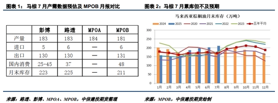MPOB月報(bào)顯示,馬棕7月產(chǎn)量181萬(wàn)噸,環(huán)比增7.09%,略低于主流機(jī)構(gòu)預(yù)估;出口131萬(wàn)噸,環(huán)比增3.82%,基本符合預(yù)期;但因國(guó)內(nèi)消費(fèi)維持48萬(wàn)噸高位,馬棕7月末庫(kù)存僅環(huán)比增4.02%至211萬(wàn)噸,低于主流機(jī)構(gòu)預(yù)估,這帶來(lái)棕櫚油市場(chǎng)情緒的相應(yīng)上修。