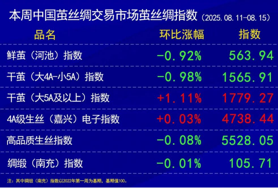 本周中國繭絲綢交易市場繭絲綢指數(shù)
