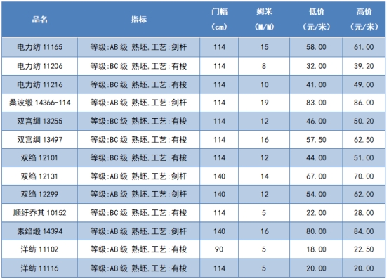 本周綢緞指數(shù)協(xié)作單位成交價(jià)格區(qū)間