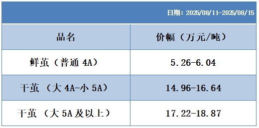 根據(jù)本周蠶繭報(bào)價(jià)按照指數(shù)方案形成的基準(zhǔn)品價(jià)格區(qū)間