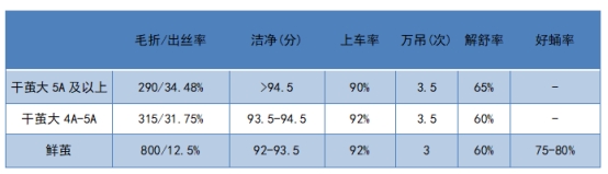 干繭指數(shù)上,本周主要處于云南和四川等地的早秋(夏)繭的收烘和干繭調(diào)出時(shí)間段。同樣,干繭自身收烘和干繭調(diào)出的成本有差距,整個(gè)莊口內(nèi)單莊口之間的價(jià)格有差距。數(shù)據(jù)經(jīng)過指數(shù)模型轉(zhuǎn)換后,本周的大5A及以上干繭價(jià)格指數(shù)有所上漲,大4A及小5A干繭價(jià)格指數(shù)有所收跌。等級間的差距有所拉大。