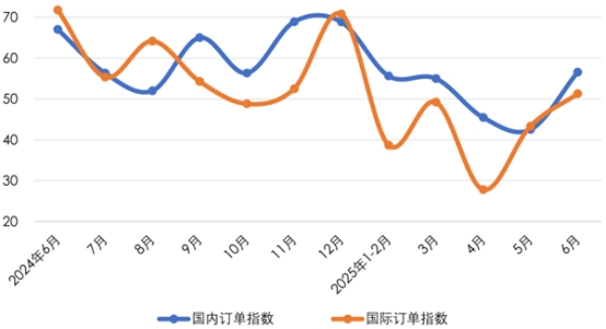 圖2 2024年6月-2025年6月產(chǎn)業(yè)用紡織品行業(yè)國內(nèi)外市場需求情況