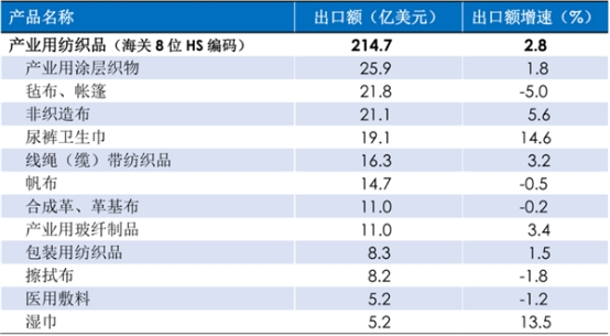 數(shù)據(jù)來源:中國海關(guān),中國產(chǎn)業(yè)用紡織品行業(yè)協(xié)會