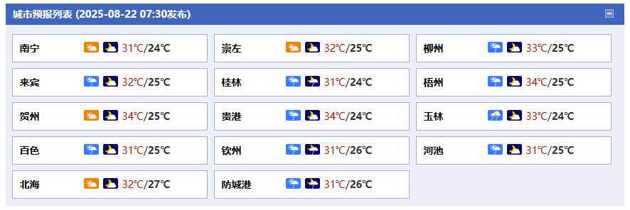 廣西氣象臺(tái)22日05時(shí)發(fā)布預(yù)報(bào):