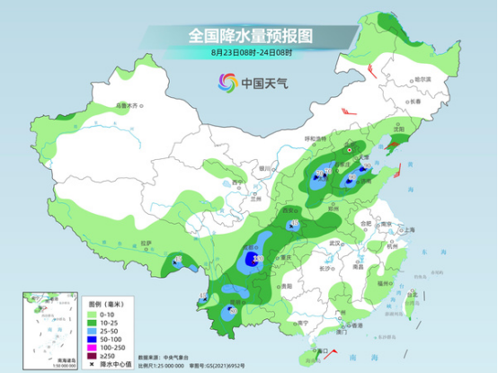 后天,東北地區(qū)中南部、華北南部、黃淮大部、四川盆地、云南北部、華南南部沿海、海南島、西藏東南部等地部分地區(qū)有中到大雨,其中,吉林東南部、遼寧中東部、四川盆地西南部、海南島中東部等地部分地區(qū)有暴雨或大暴雨。