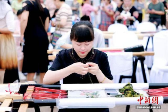 5月29日,第三屆“金針杯”中國刺繡技藝交流活動(dòng)在四川成都郫都區(qū)舉行,現(xiàn)場蜀繡從業(yè)者展示刺繡技藝