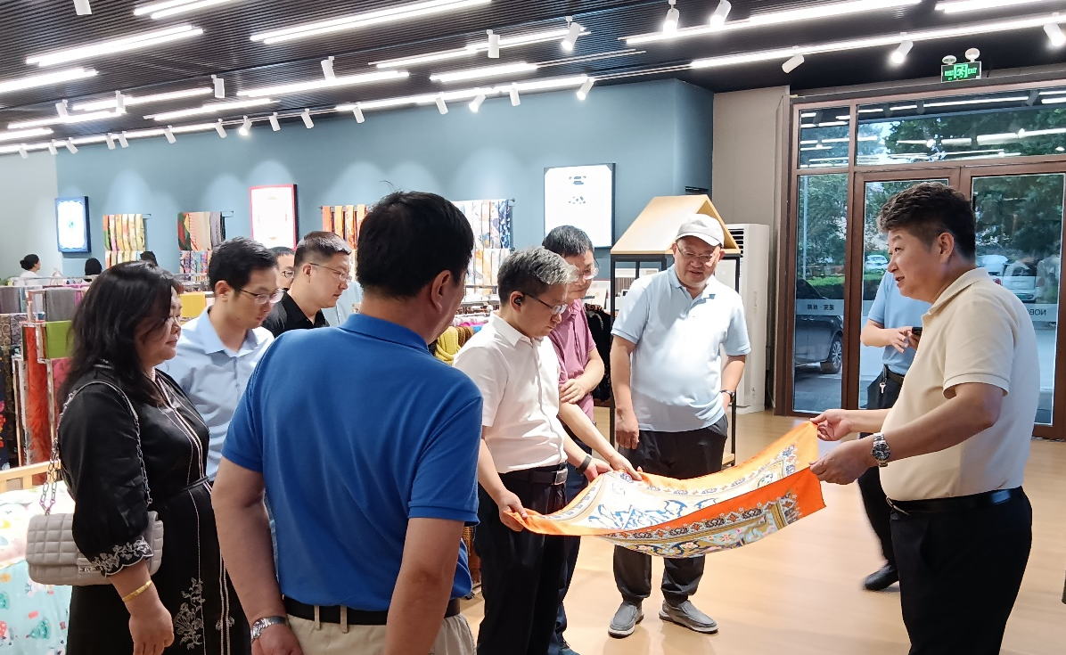 代方銀首席一行實(shí)地考察了淄博大染坊絲綢集團(tuán)有限公司,中國絲綢協(xié)會(huì)副會(huì)長、集團(tuán)公司黨委書記、董事長陳魯介紹了企業(yè)在絲綢生產(chǎn)、非遺保護(hù)、文旅融合等方面的情況。雙方圍繞絲綢文化傳承與產(chǎn)業(yè)創(chuàng)新等主題進(jìn)行了座談交流,代方銀首席和崗位科學(xué)家們就絲綢文化挖掘與發(fā)揚(yáng)、傳統(tǒng)產(chǎn)業(yè)現(xiàn)代化轉(zhuǎn)型等方面提供了新思路,雙方還就國家蠶桑體系成果在企業(yè)轉(zhuǎn)化應(yīng)用進(jìn)行了探討。