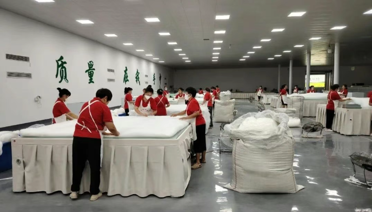 僅數(shù)公里外,位于嘉陵工業(yè)集中區(qū)的銀海絲綢新廠區(qū)內(nèi),剛剛完成升級的中國蠶絲被之鄉(xiāng)文化館也正式對外開放。600平方米的空間內(nèi),“悠久歷史”“絲被滄?!薄懊}動電商”等六大展區(qū)層次分明,既陳列著百年來的手作工具和歷史文獻,也借助數(shù)字影像和交互裝置沉浸式呈現(xiàn)蠶絲被的制作工藝。